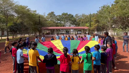 On 8th January 2026, 3rd standard students of Meridian School, Hyderabad, visited our child care home as part of an educational and social outreach initiative. The students thoughtfully brought confections to share with the children of our home and spent time touring the campus to understand their daily routines and way of life. The teachers from Meridian School engaged the children with meaningful stories and interactive activities that were both kind and informative. All the children enjoyed participating in a game of tug-of-war, planting saplings together, sharing snacks, and painting kites.